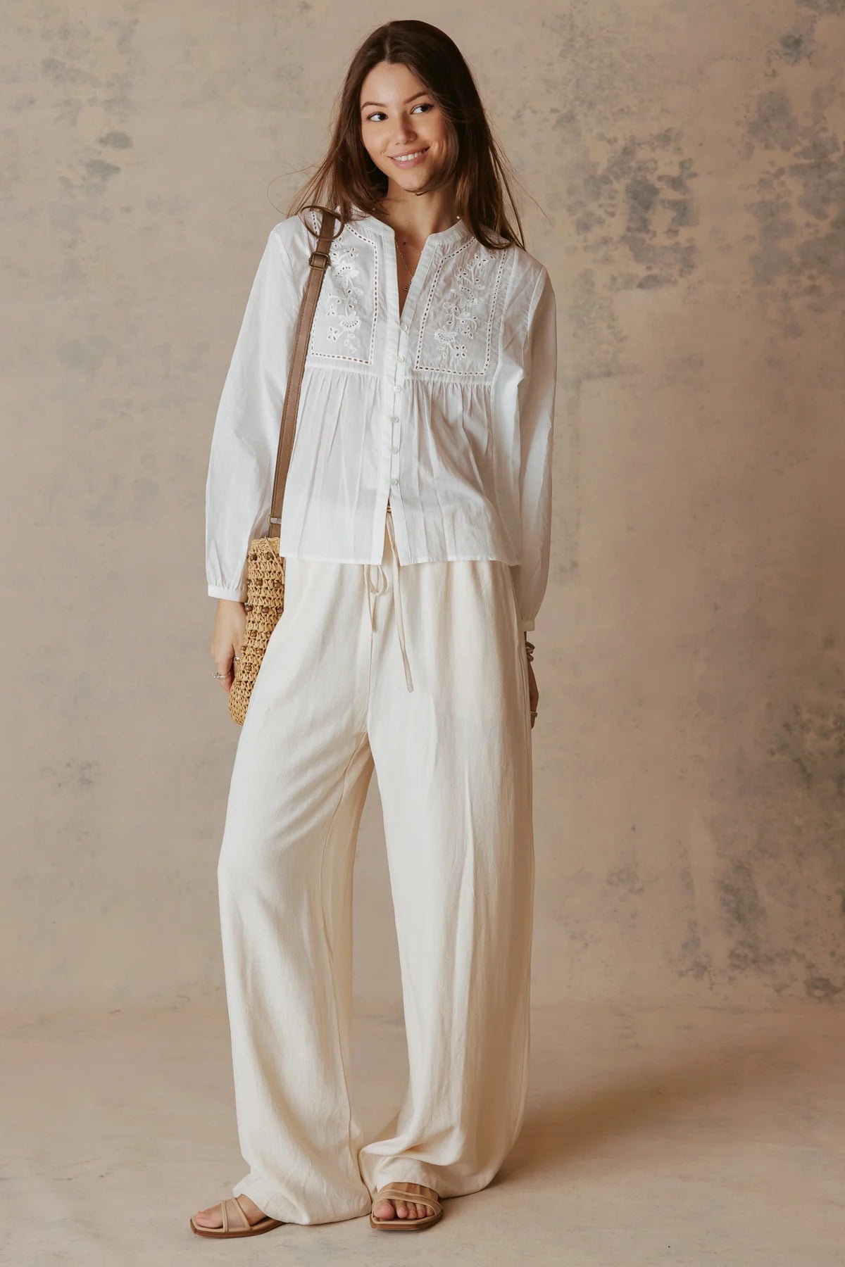 Marlee is a lightweight cotton voile blouse designed with a band collar and embroidered detailing at the front and back yoke. Airy and refined, it offers a soft, elevated feel—perfect for effortless spring and summer dressing.