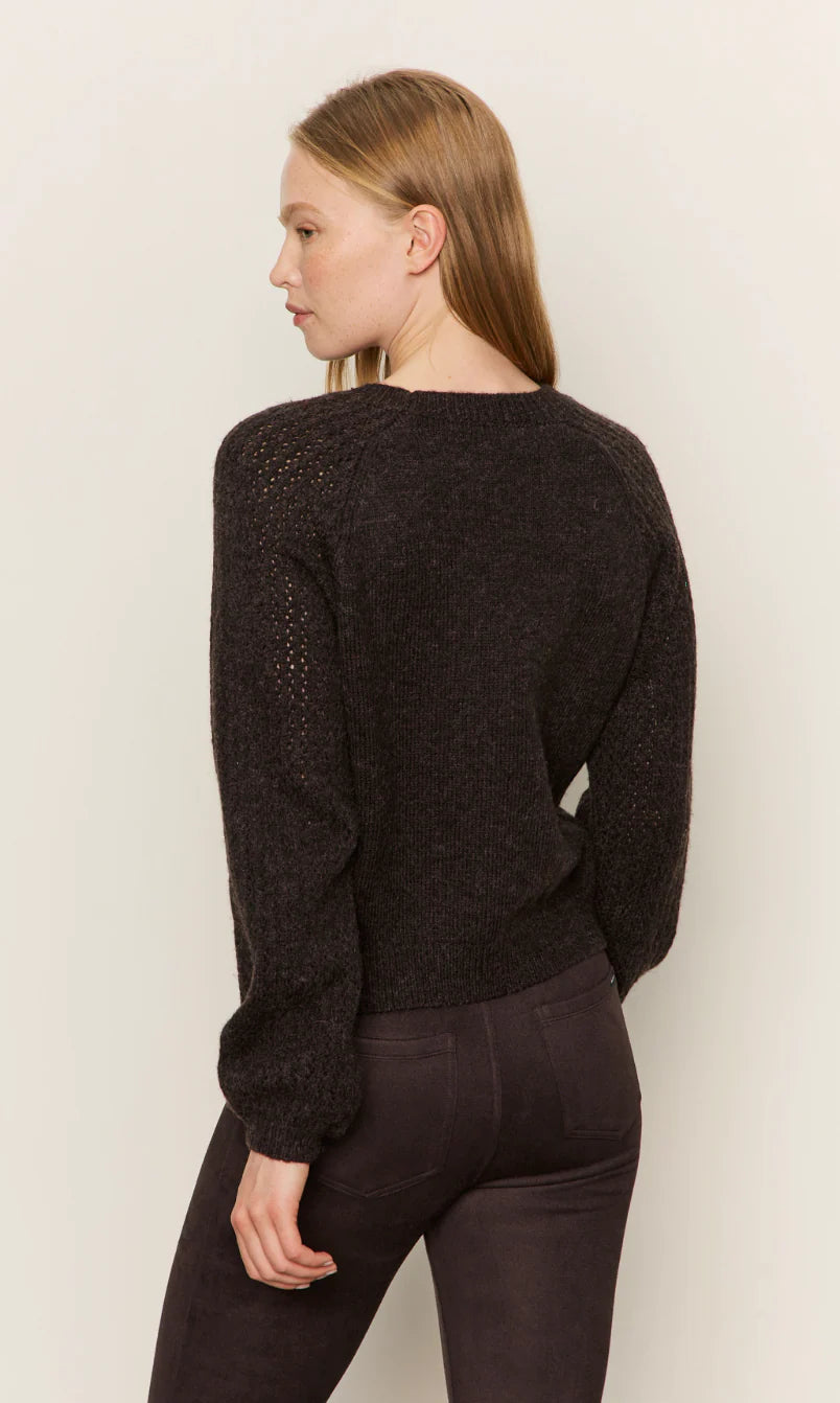 Airy stitch work sweetens the sleeves of a staple sweater knit from a warming blend enriched with wool and alpaca.