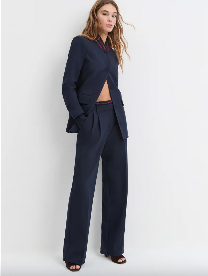 The Varsity Blazer will be your wardrobe's MVP. It's cut from a fully-lined, textured boucle and has all the winning details. Slim fit, a rib-knit viscose-blend striped collar, solid rib cuffs, front flap pockets and self-covered buttons.