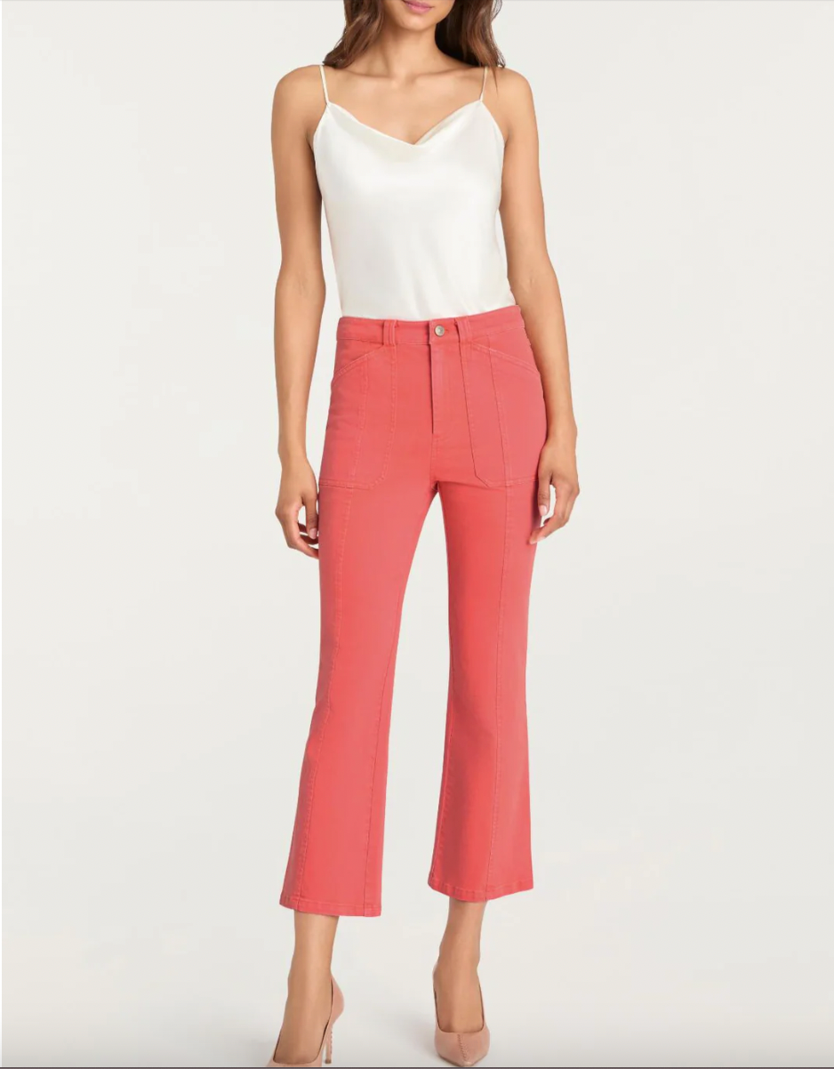 Meet the Fly Front Wallace Jeans—a wardrobe essential that balances polish with ease. This mid-rise cropped style pant showcases a graceful flared leg in a vibrant hue that refreshes any outfit. The tailored construction keeps things refined while the flare creates an elongating silhouette. Dress it up with a tucked blouse or keep it casual with sneakers.