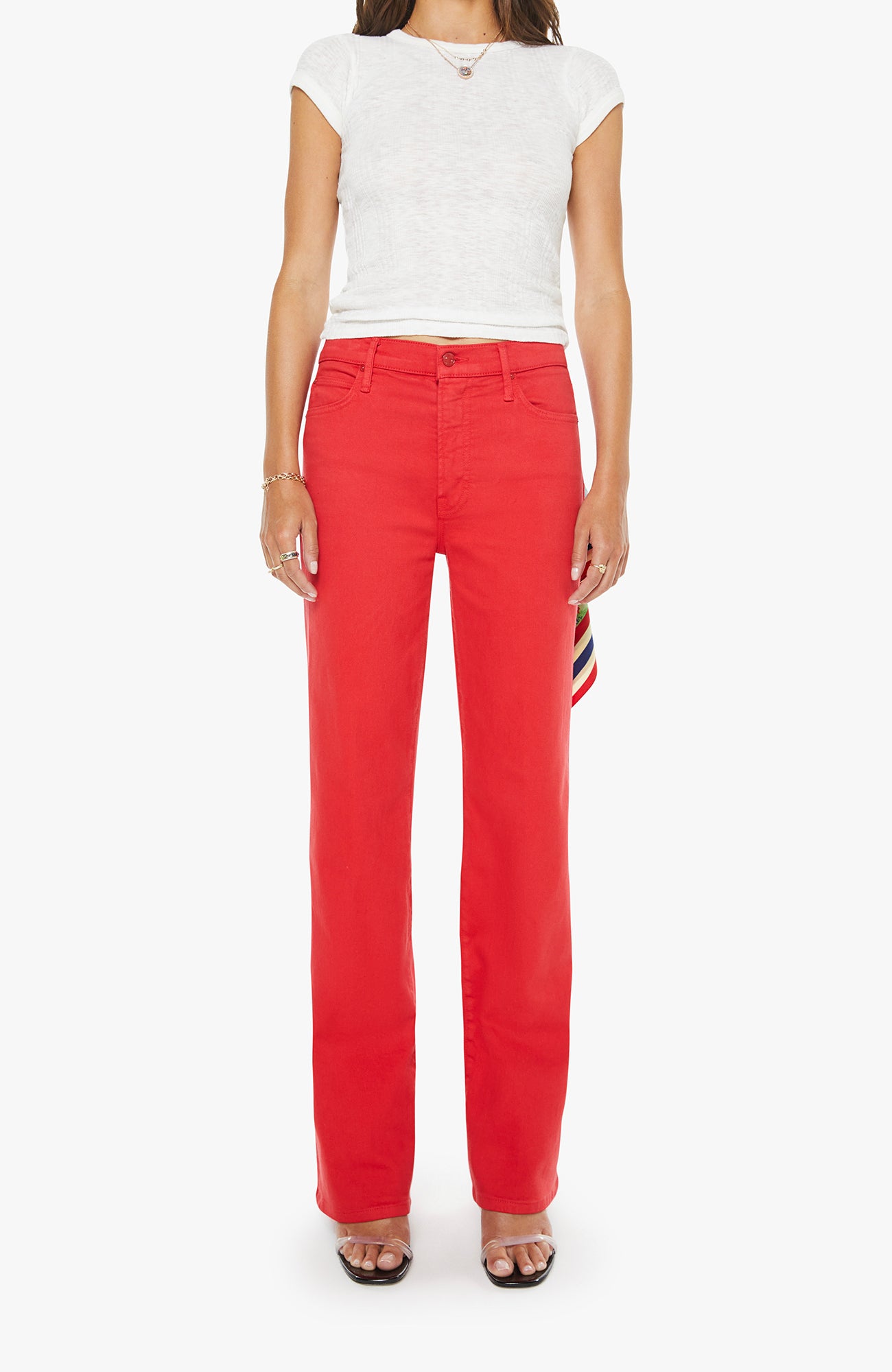 Crowd pleaser. A high-rise straight leg jean with a 32-inch inseam and a clean hem. Cut from stretch denim.