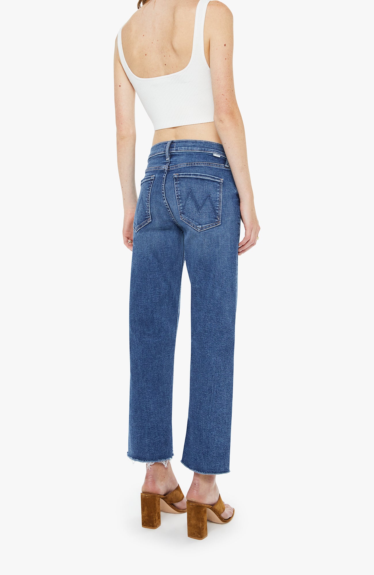 Hidden treasure. Mid-rise straight-leg jeans with a zip fly, ankle-length inseam and a frayed hem. Made from stretch denim, Prized Possession is a mid blue with subtle whiskering and fading at the knees.