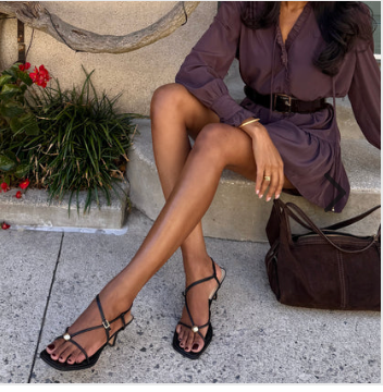 Understated, strappy, and goes with everything. MYLEE’s architectural heel and minimalist hardware add a cool modern touch to dresses and matching sets.