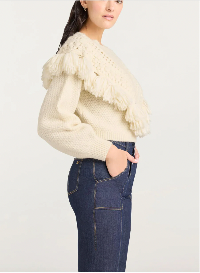The Mariali Pullover is a wool knit cropped sweater designed with tassel details. The perfect knit to elevate your wardrobe. Pair this statement top with a simple pair of jeans or skirt for an effortless cozy and chic look.