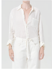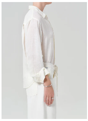 The Shrunken Kayla Shirt reimagines the classic button-down with a more tailored, cropped fit. Crafted from super lightweight linen, it’s ideal for layering over swim or pairing with your favorite travel pieces. The oversized silhouette is redefined with a high-low hem, adding a modern twist to this timeless staple. Versatile and effortlessly chic, it’s perfect for creating polished, laid-back looks year-round.