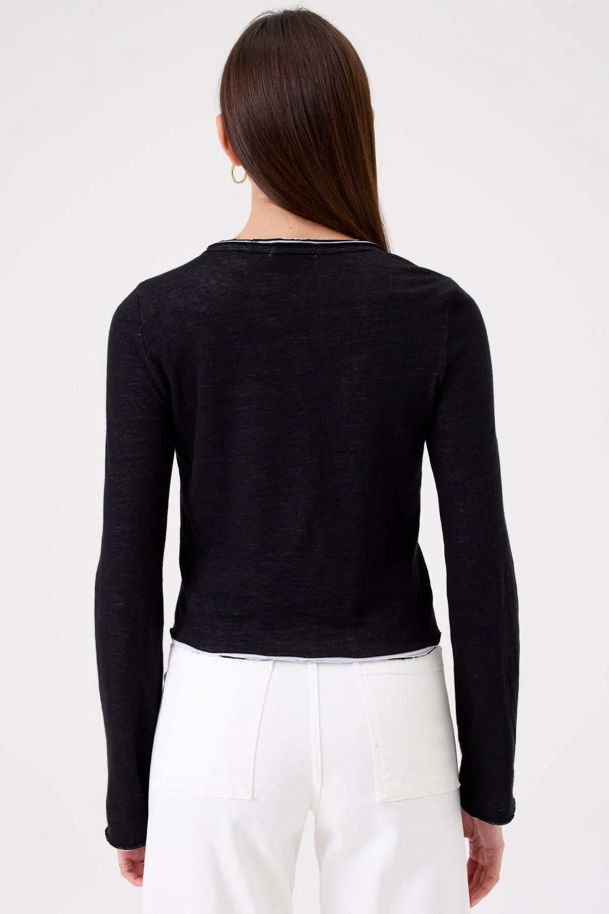 Envy of everyone: he Chloe classic cardigan crafted with two layers of Peruvian pima that feel like heaven on your skin. Unfinished hems showcase hints of the contrasting underlayer for a modern look.
