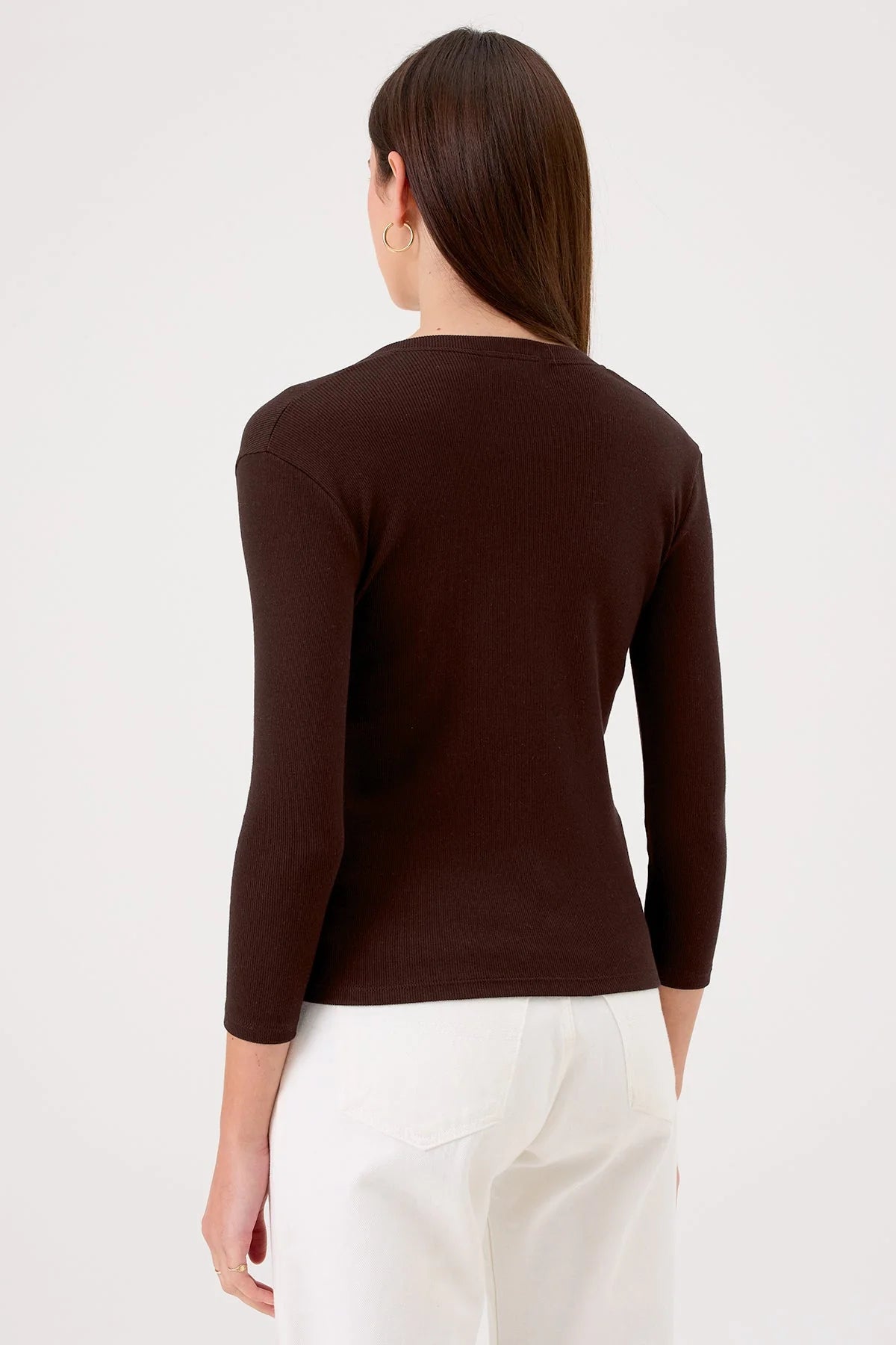 Everlasting love: thoughtfully designed with ¾-sleeves, a deep V-neck and a soft ribbed knit, this is the top you’ll never want to take off.